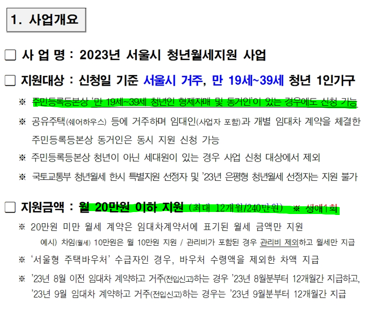 - 신청일 기준 서울시에 거주해야 하고 만 19세 이상 39세 이라 청년 1인 가구만 해당됩니다.