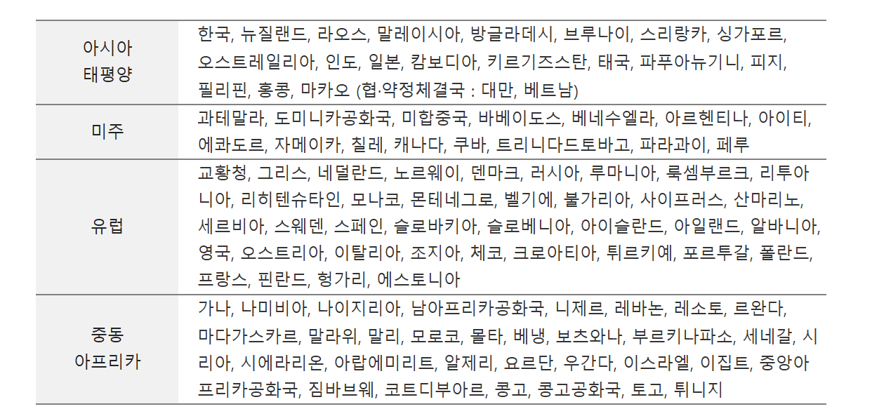 103개국 모두 제네바협약과 비엔나 협약에 에 가입한 나라입니다.