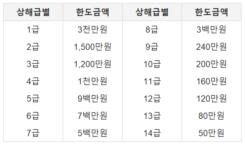 자세한 상해 급수별 보상한도 금액은 내용이 많아서 포스팅하지 못하고 아래 첨부파일로 정리했습니다.