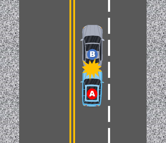 그렇기 때문에 앞차(B차량)의 제동등이 고장난 경우 과실이 추가 됩니다.