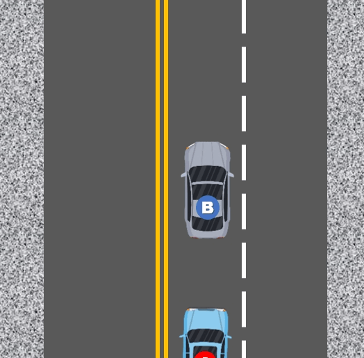 이때 이유없이 앞차가 정지하는 경우에도 앞차(B차량)에게도 과실이 추가됩니다.