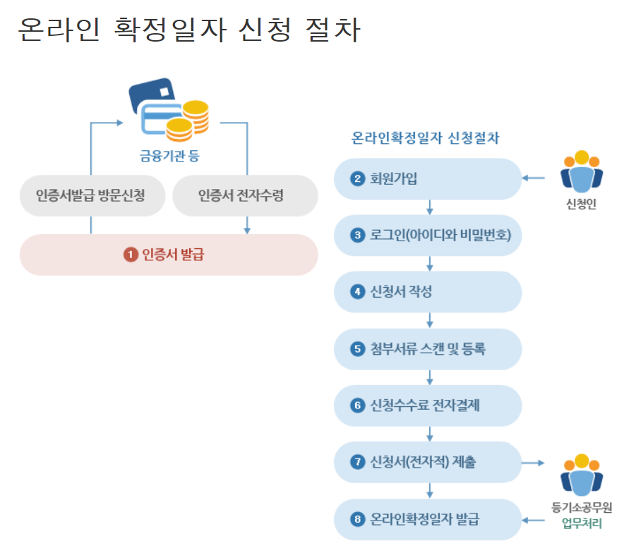 확정일자 신청은 확정일자 부여 담당기관을 방문하지 않고 어디서든지 온라인을 통해 경제적이며 신속하고 편리하게 확정일자를 신청할 수 있는 방식입니다. 온라인 확정일자 신청을 할 수 있