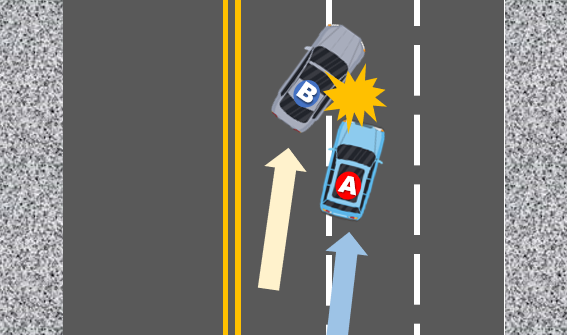 만약에 앞서가던 B차량이 먼저 차선을 변경하기 시작했고, 같은 차선 뒤에서 오던 A차량이 B차량과 동일한 차선으로 변경하다가 사고가 난 경우는 이 경우를 적용할 수 없습니다.