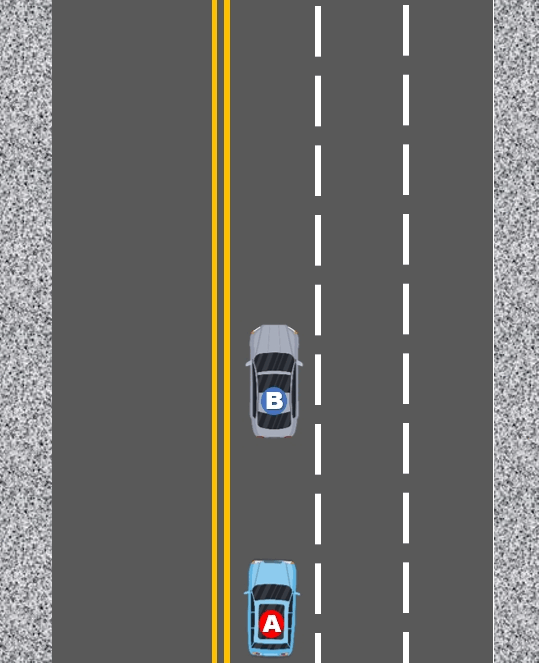 - A차량과 B차량이 동일 차로에서 주행을 하고 있었습니다.