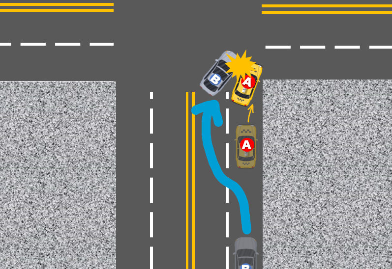 참고로, B차량은 직진을 하는 경우일 수도 있고 우회전을 하는 경우라고 할 수도 있습니다.