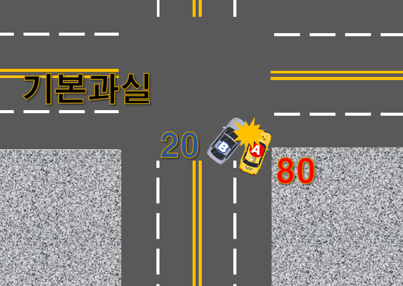 과실 비율은 A 차량 80%, B차량 20%로 B차량 가해비율이 많이 높습니다.