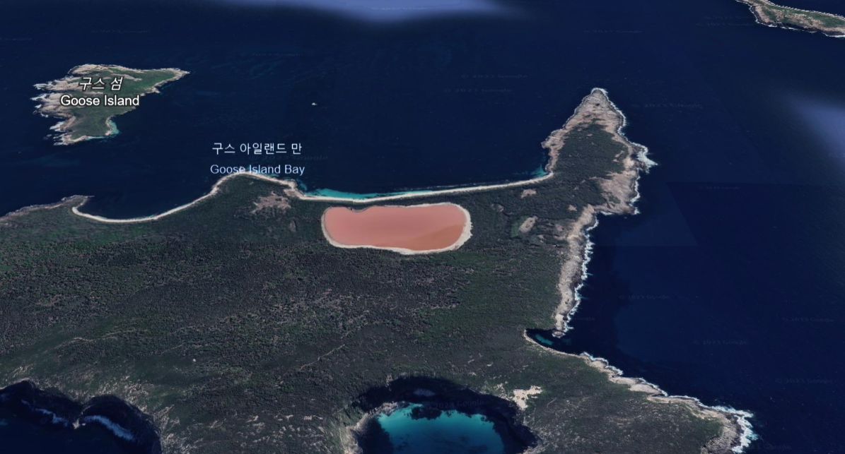 하늘에서 바라보면 인도양의 푸른 바다와 힐리어 호수의 분홍색이 대조되는 모습이 매우 인상적입니다.