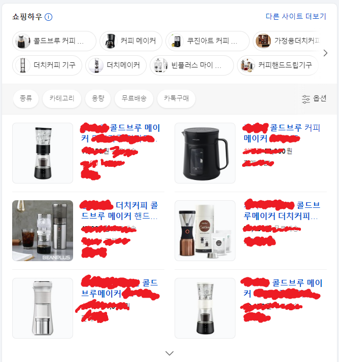 인터넷으로 콜드브루 메이커를 검색하면 많은 종류의 상품들이 나옵니다.
