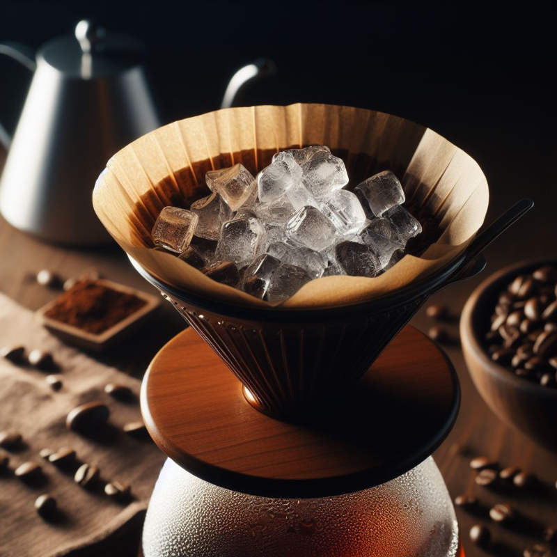 콜드브루 원리를 살려 최대한 집에서 간단하게 만드는 방법은 곱게 분쇄한 커피 원두를 여과지에 넣고 얼을음 얹은 후 천천히 얼음을 녹이면서 내리는 방식입니다.