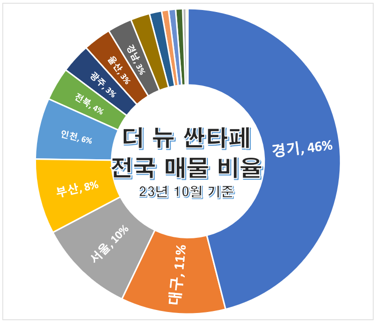 더 뉴 싼타페의 매물은 경기 지역에 46%가 몰려있습니다.