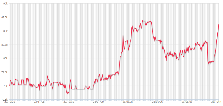 올 4월에 피크 찍고 내려왔다가 다시 피크를 향해 가고 있습니다.