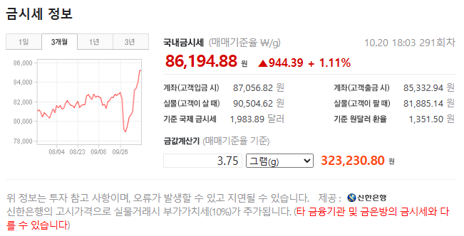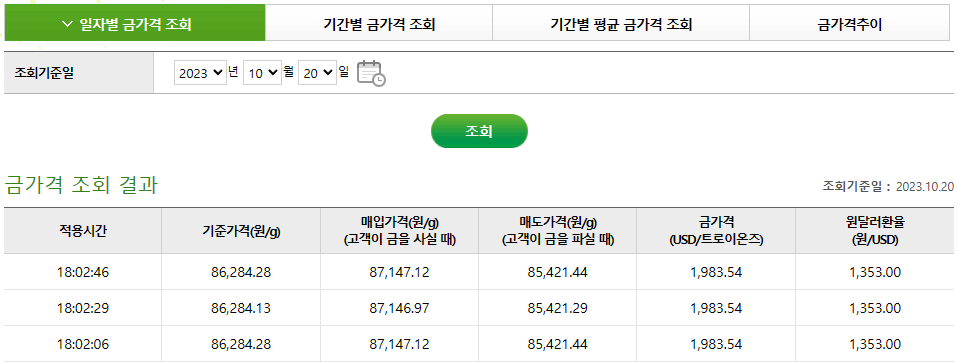 그런데 금값이 올라도 환율처럼 사는 가격과 파는 가격이 금융기관에는 잘 나와있지 않습니다.