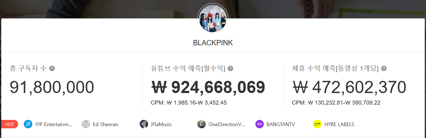 그럼, 블랙핑크 유튜브 수익을 알아볼까요?