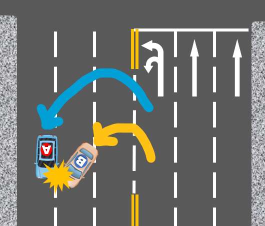 결국 A차량과 B차량이 접촉사고를 내고 말았습니다.