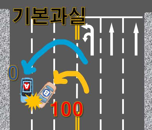 동시 유턴 중 사고는 유턴 전후 차량의 순서가 바뀌므로 복잡할 것 같지만 의외로 심플합니다.