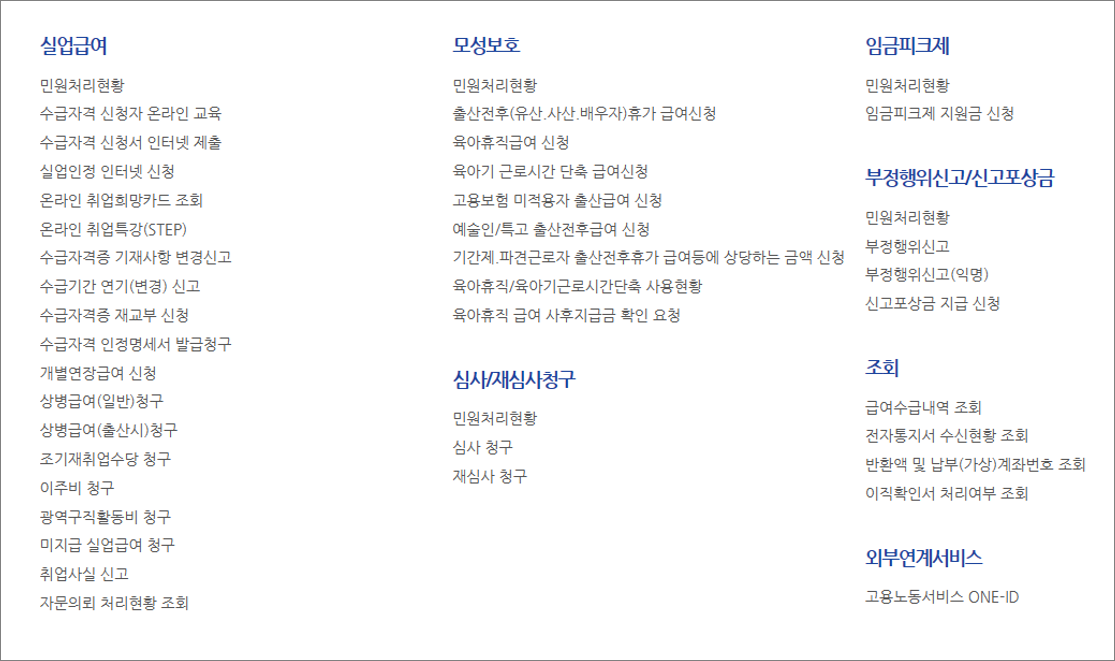 고용보험 홈페이지 종류