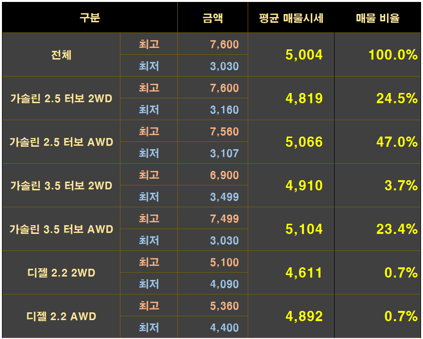 그런데 디젤은 매물이 진짜 별로 없습니다.