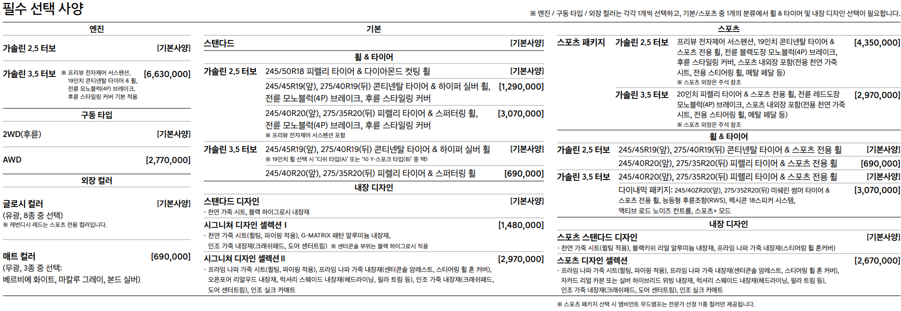 G80의 기본 모델은 가솔린 2.5 터보 2WD 입니다.