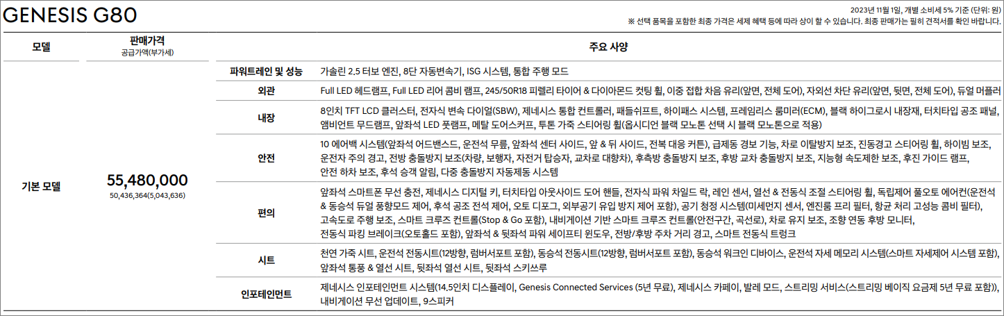 5. G80 2023년11월 신차가격