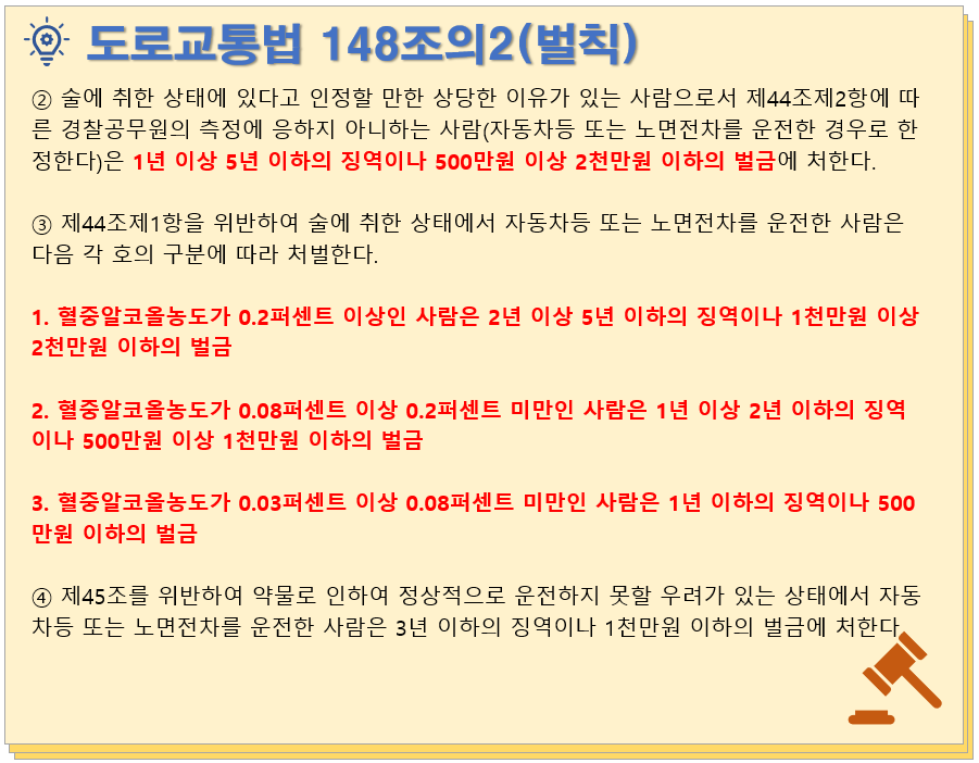 음주운전은 도로교통법 제148조의 2에 근거하여 처벌됩니다.