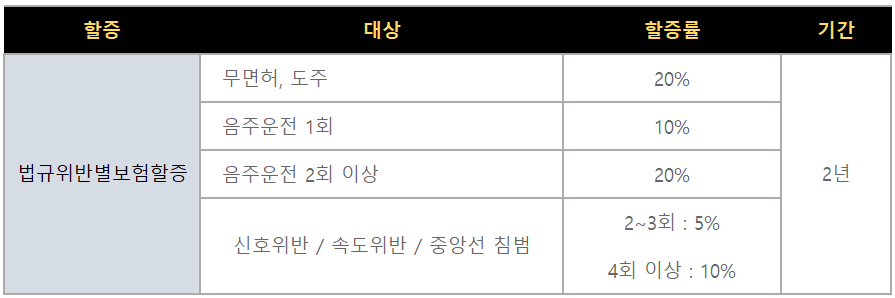 - 중대교통법규(신호위반, 중앙선 침범 등) : 건당 8천원