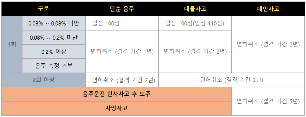 1. 음주운전 처벌 기준화 벌금