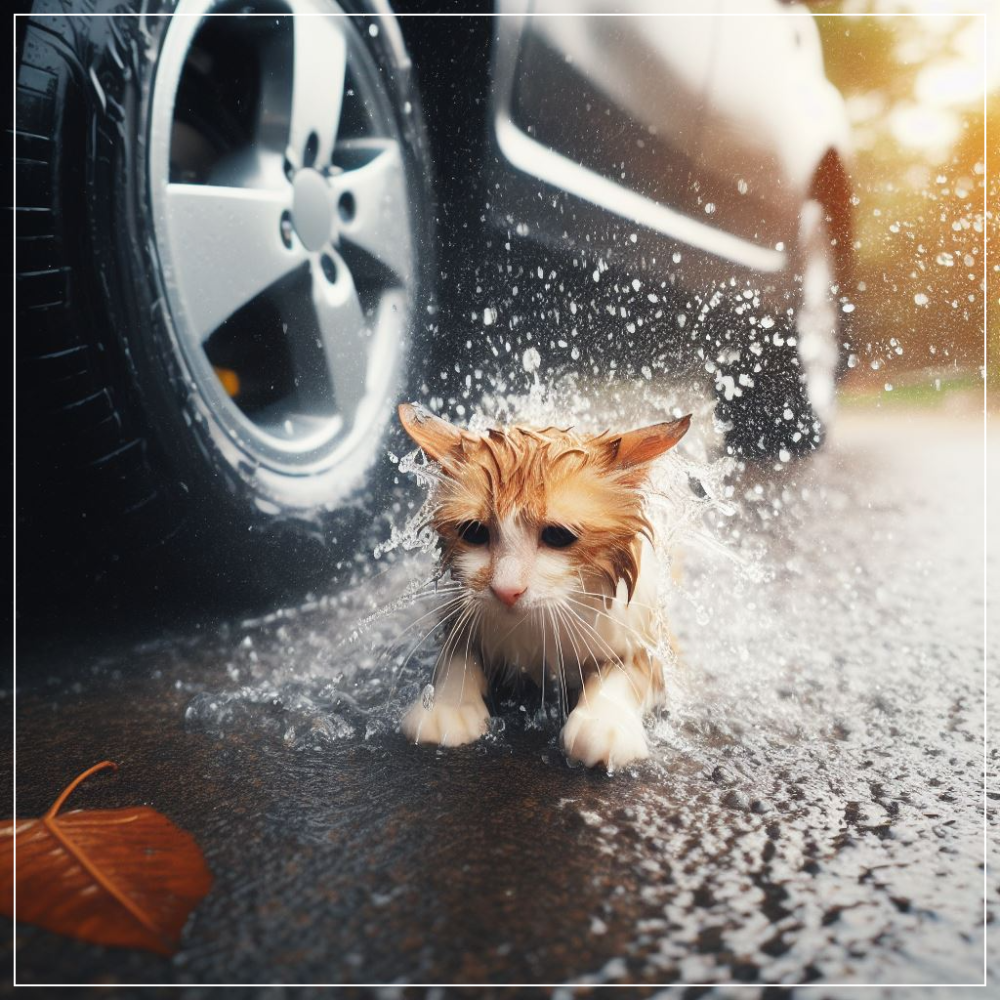 자동차로 길가에 고인 물을 튀겨 지나가던 사람에게 피해를 입히면 벌금을 물어야 한다고 합니다.