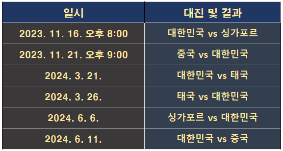 4. 한국 경기 및 주요 경기 일정