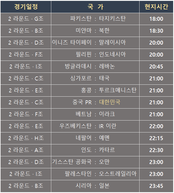 위 경기일정은 FIFA에서 제공한 경기일정입니다.