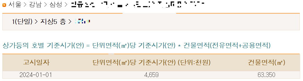 단위면적(㎡)당 기준시가가 4,659천원이라는 것이 나옵니다.