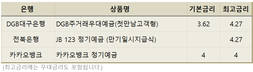 오늘은 제1금융권 은행에서 금리가 4% 이상인 정기예금에 대해서 알아봤습니다.