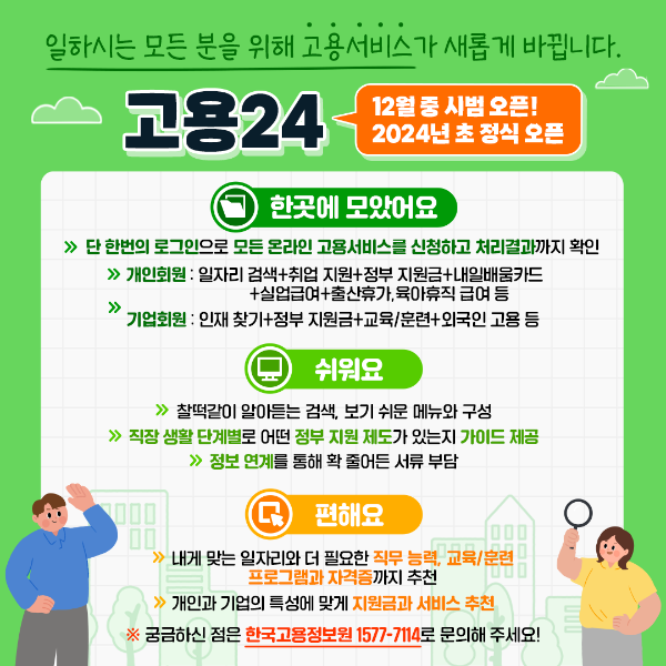 2023년 12월에는 고용행정통합포털(고용24)이 새로 오픈합니다.