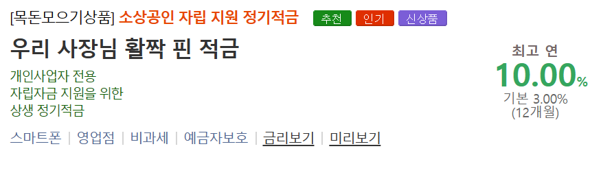 우리 사장님 활짝 핀 적금은 이자가 무려 10%나 됩니다.