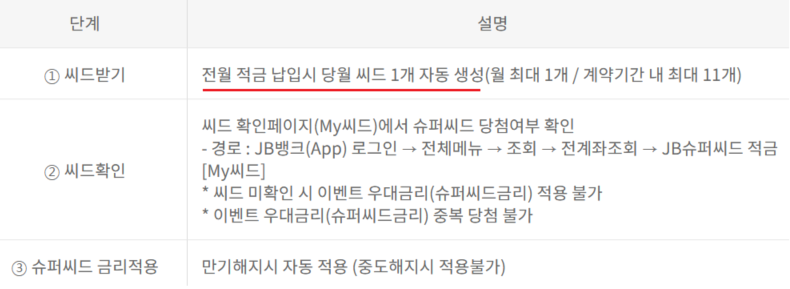 JB슈퍼씨드 적금은 디지털채널 전용으로 미션을 수행해야 합니다.