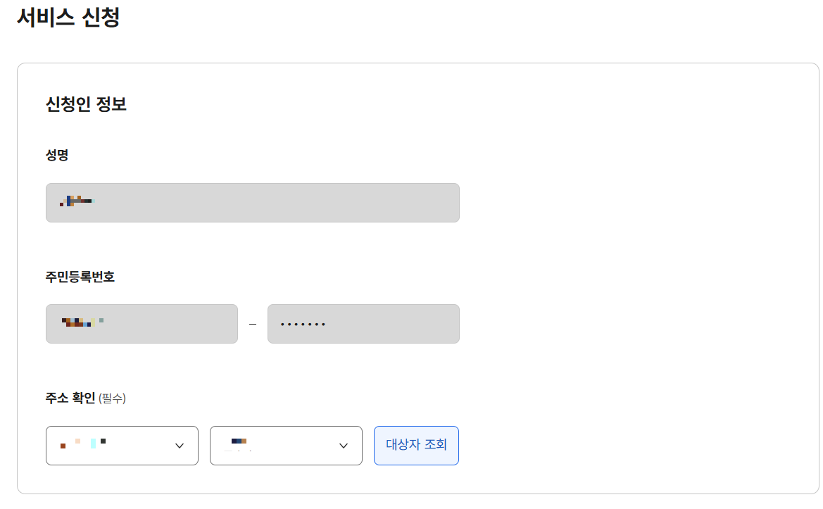 자 이제 2단계인 서비스 신청단계입니다.