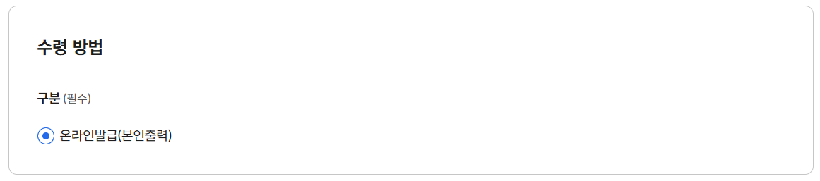 수령방법은 온라인 발급 밖에 없네요.