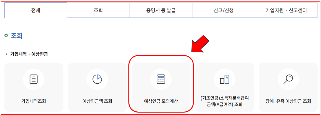 3. 국민연금공단 예상연금 확인