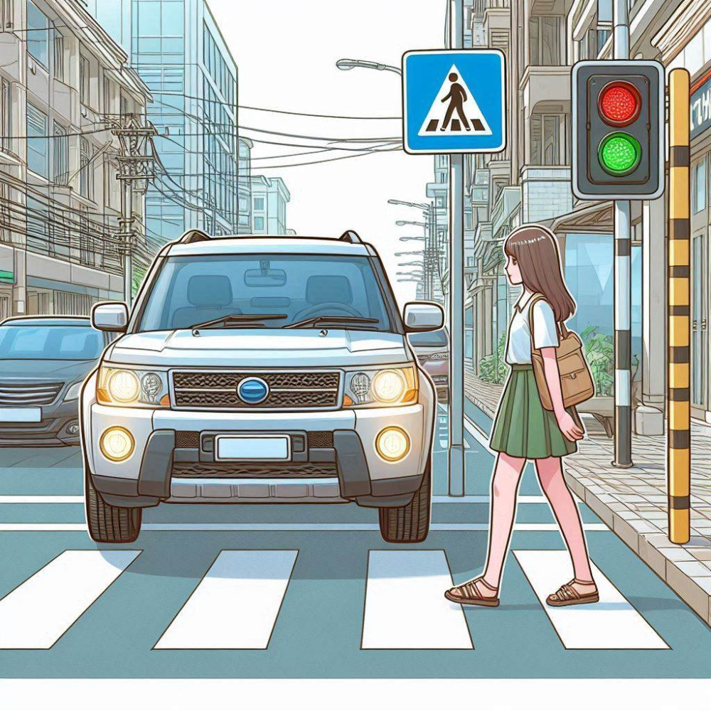 - 도로교통법 제27조: 보행자가 횡단할 때, 운전자는 안전거리를 두고 일시 정지해야 함.