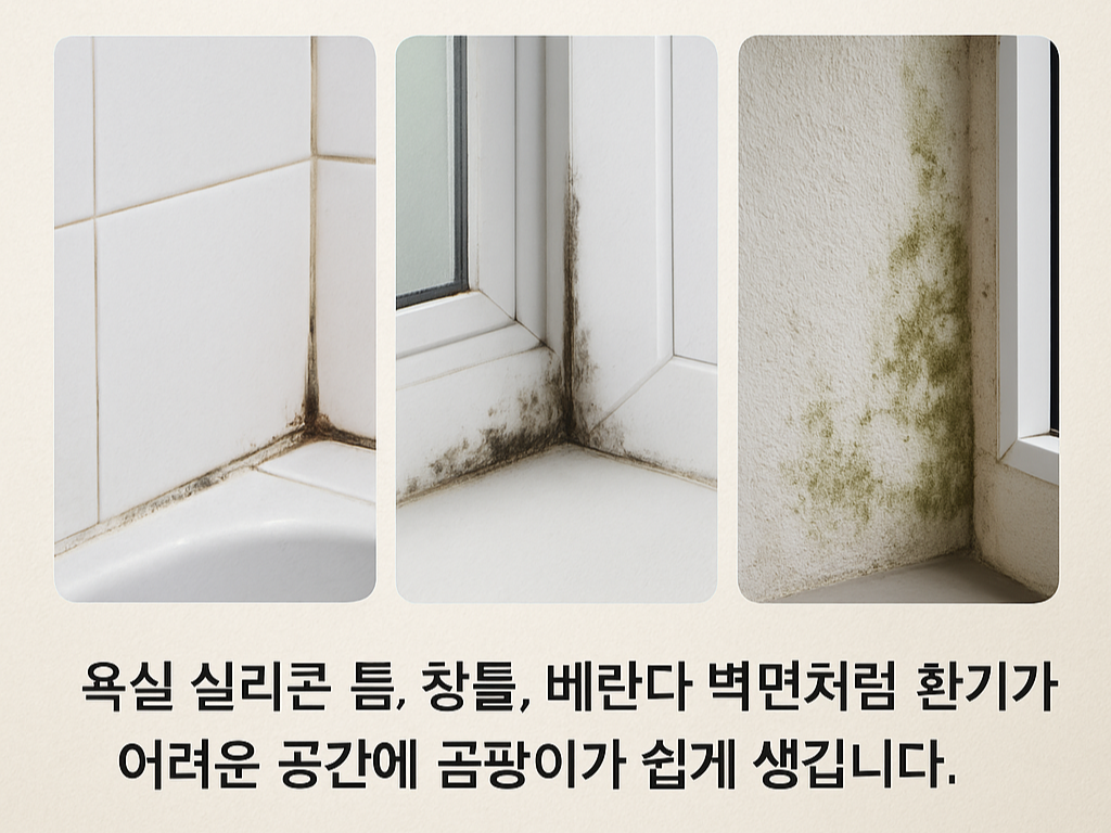 장마철이 되면 습한 날씨 탓에 집 안 곳곳에 곰팡이가 슬기 시작합니다. 욕실, 창틀, 베란다, 옷장, 주방 수납장 등 평소엔 괜찮았던 공간에서도 곰팡이가 자라기 시작하면서 위생과 건강에까지 영향을 주게 되죠. 특히 어린아이나 반려동물을 키우는 집이라면 더 신경이 쓰일 수밖에 없습니다.